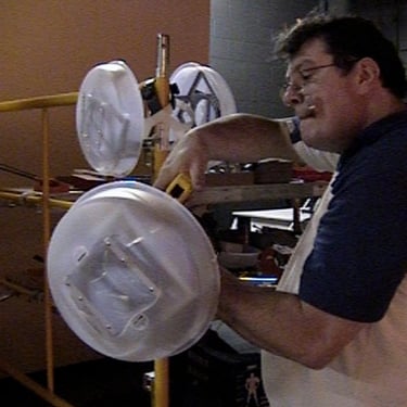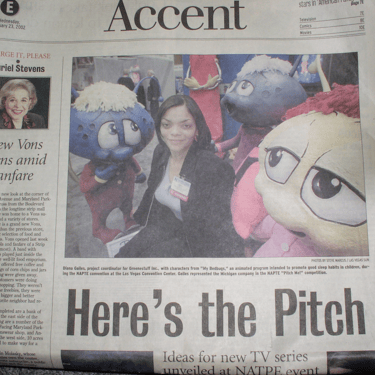 A chance inquiry at a computer store connected me with Chris Nierhaus, a talented local Detroit area graphic designer who agreed to build my website. Chris's enthusiasm didn't stop there; he took the initiative to create three-foot papier-mâché characters for our conference display. Despite his full-time job at GM, Chris dedicated every spare minute to designing the booth. Meanwhile, I was reaching out to potential investors and physically doing the construction of the studio walls and the giant bed.